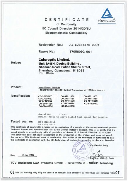 Tiêu chuẩn: CESố: AE503443750002ngày phát hành: 2022-10-16Ngày hết hạn: 2025-11-20