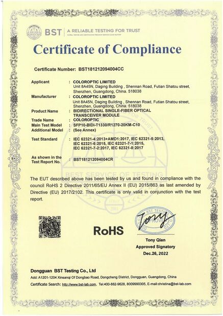 Tiêu chuẩn: ROHSSố: BTS181212094004CCngày phát hành: 2022-10-26Ngày hết hạn: 2026-12-30